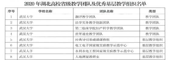 近日,省教育厅审核公布了2020年湖北省高校省级教学团队及优秀基层教学组织名单,52书库