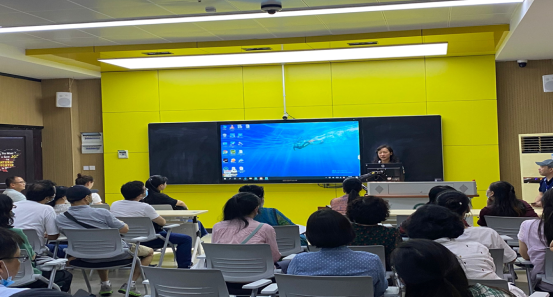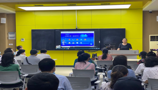 智慧教室的建设情况非常熟悉。他以平台设置为入口,为老师们详细介绍了智慧系统的操作原理、使用方法和教学效果。结合培训,也和老师们就教学过程中的一些细节问题展开了讨论与交流。
