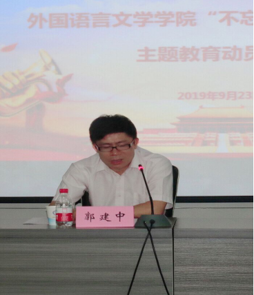 会议第二项,郭建中部长发表讲话。他首先传达了党中央关于开展“不忘初心、牢记使命”主题教育的最新精神和要求,并介绍了第七巡回指导组的七项职责任务。郭建中对学院认真做好了主题教育动员的准备工作给予了肯定,他认为学院能够认真学习习近平总书记关于主题教育的重要讲话和重要指示批示精神,组建了领导小组和办公室,结合学院实际研究制定了主题教育实施方案,准备充分到位。之后郭部长还就落实主题教育各项任务提了明确意见:一是深入学习贯彻习近平新时代中国特色社会主义思想,打牢思想理论基础;二是准确把握“守初心、担使命、找差距、抓落实”的“十二字”总要求,以主题教育推动学校和学院改革发展中心工作;三是紧扣“理论学习有收获,思想政治受洗礼,干事创业敢担当,为民服务解难题,清正廉洁作表率”的“五句话”目标任务,切实解决担当执行中存在的突出问题;四是认真领会“不能搞两张皮,不能搞花架子,不能搞自由行”的“三个不能”,统筹推进学习教育、调查研究、检视问题、整改落实四项重点措施,对标对表抓落实;五是力戒形式主义、官僚主义,确保主题教育取得实效。