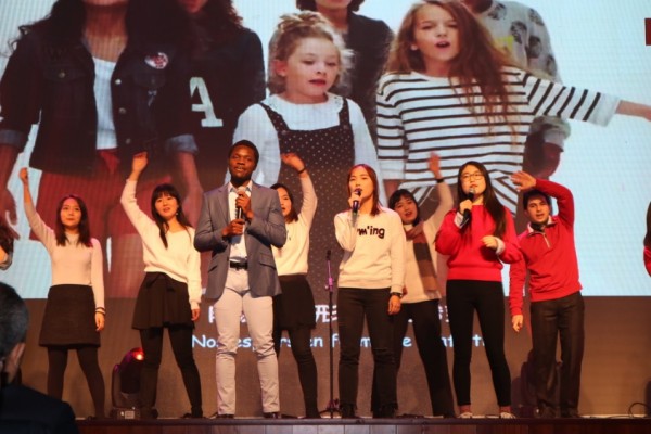 研究生们充分发挥外院语言优势,演唱法语歌曲On écritsur les murs为王战老师庆贺。并由其指导的博士,来自摩洛哥的韩当当同学为其颁奖。