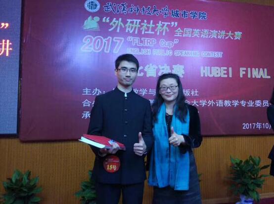 (通讯员:文芳)11月4日,2017“外研社杯”全国英语演讲、写作、阅读大赛湖北赛区复赛落下帷幕,来自湖北省各大高校的100多位优秀学生参加了这三项赛事。我校数学与统计学院的王伟达同学,弘毅学堂的冯焱信同学,法学院的孙榕同学在激烈的竞争中脱颖而出,表现出我校学子敏锐的思辨能力和极高的英语综合应用能力,分别摘得演讲比赛和阅读比赛的特等奖,以及写作比赛二等奖。王伟达同学和冯焱信同学还将代表湖北省参加12月在北京举行的“外研社杯”全国总决赛。