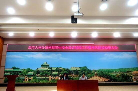 安全教育管理工作暨学风建设动员大会于11月9日下午4点在外院报告厅举行。本次大会由马萧院长主持,党委书记黄宏发、党委副书记胡浩、孙燕和副院长王爱菊分别传达文件精神和进行工作部署,学院全体教职工和部分学生干部参会。