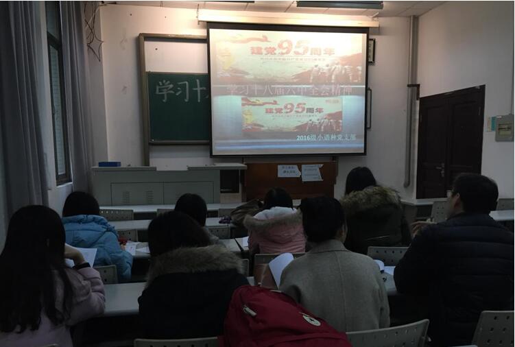 2016级小语种研究生党支部在学院03教室开展了以“两学一做之学习十八届六中全会精神”为主题的组织生活会。小语种支部研究生党员参加了学习讨论和交流,会议由支部书记陈杭程主持,学院党委副书记胡浩老师作为普通党员参加了此次组织生活。