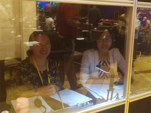 俄语系青年教师田园、张鸿雁在“互联互通专场论坛”中担任同声传译