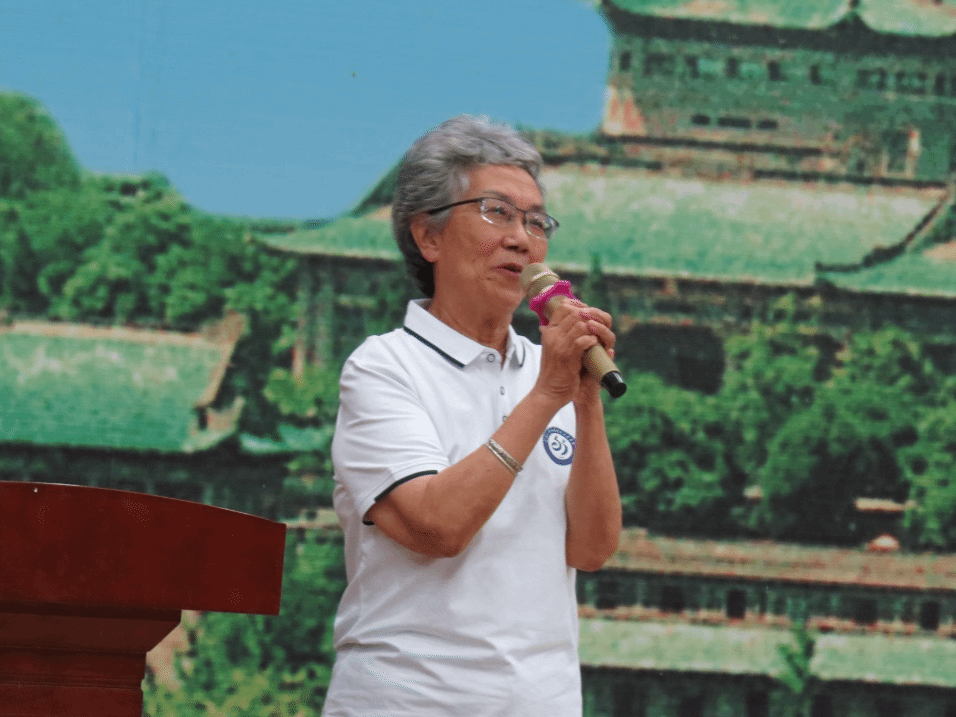 之后,法语专业退休老教师代表熊剑秋老师上台致辞。熊老师饱含深情地回忆了当年与学生们共度珞珈时光的点点滴滴,表达了见证大家从青涩的少年成长为在各行各业发光发热的优秀人才的骄傲与自豪之情,言语间满是一位优秀的人民教师对学子们的殷殷期盼与谆谆教诲。