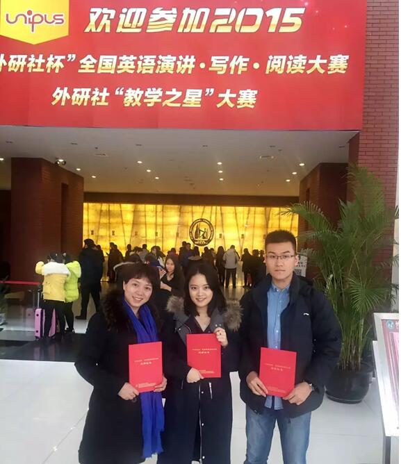 12月5日至11日,2015年“外研社杯”全国英语演讲、阅读及写作三项大赛全国决赛同时在北京举行。我校学生宋梓菡和邓默翰两位同学代表我校参加比赛,双双荣获总决赛特等奖,她们的指导教师大学英语部文芳老师和张红梅老师荣获“指导教师特等奖”。