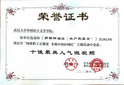 工会报送的作品《多语种诵读<共产党宣言>》荣获“十佳最具人气微视频”称号。52书库