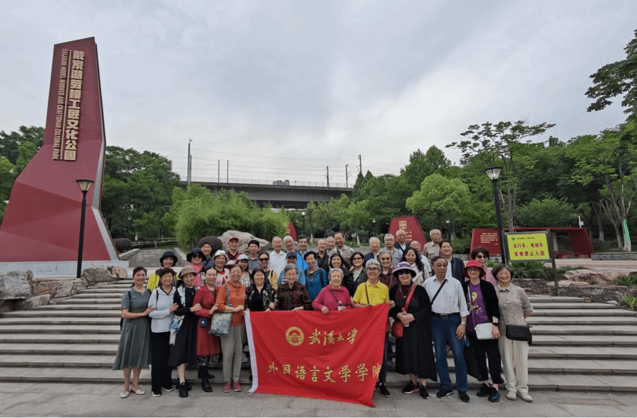 上午8:30,老同志乘车从学校出发,一路欢歌笑语,9:30到达本次春游的第一站—戴家湖公园。戴家湖公园位于武广高铁与三环线高架下,是武汉中心城区规模最大的综合性公园。公园占地约50万平方米,绿化面积达42万平方米,湖泊面积约4.7万平方米,被称为武汉东大门的一块“绿肺”。 上世纪50年代,戴家湖成为青山热电厂粉煤灰堆场,湖被填平,还堆起10米高的灰山。到90年代末,粉煤灰成为制砖原材料,戴家湖灰山被挖平,成为垃圾场。2015年,戴家湖被改建成公园重新开园。2017年11月,戴家湖公园园林绿化与生态修复项目荣获“中国人居环境范例奖”。 2024年5月7日,湖北省首座劳模工匠文化公园在武汉戴家湖公园正式对游客开放。该公园集自然景观与工业雕塑于一体,畅游其中,既能让人们领略自然之美,也能了解该公园的历史变迁。老同志们纷纷拿出手机,用一张张照片留下美好的瞬间。