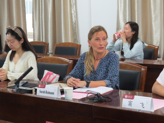 徐琼星老师对Sarah Reimann和窦飞老师的到访表示热烈欢迎,并依次介绍了与会教师及学生,其中部分学生志愿者曾赴或即将前往鲁尔都市孔子学院交流学习。