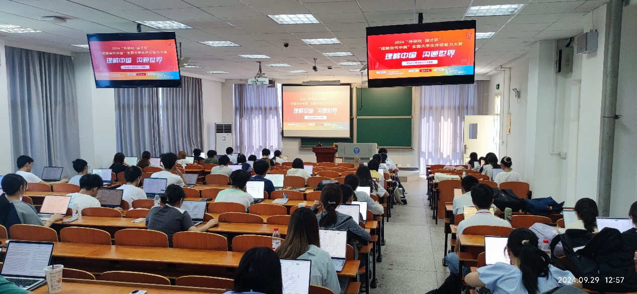 英语组校赛系列赛事,涉及综合能力赛项、演讲赛项、口笔译赛项、短视频赛项。各赛项面向全校各专业本科生和研究生,共有来自全校各院系近1400位学生报名参赛。竞赛采用线上线下相结合的方式进行。