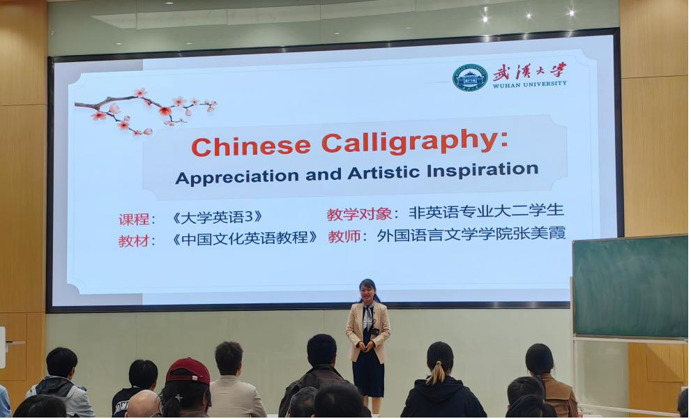 大学英语部张美霞老师通过引导学生品鉴中国书法这一独特的艺术形式,深入探讨艺术灵感的来源,同时传播中国文化的深厚底蕴。在课堂中,她适当地导入AI技术与传统书法技艺,深入浅出地进行对比。张老师为大学基础通识教育课程赋予了时代性和先进性,既增强了学生的文化自信,响应了习近平总书记建设社会主义文化强国的号召,也在潜移默化中培育了学生审美能力和艺术品鉴能力。