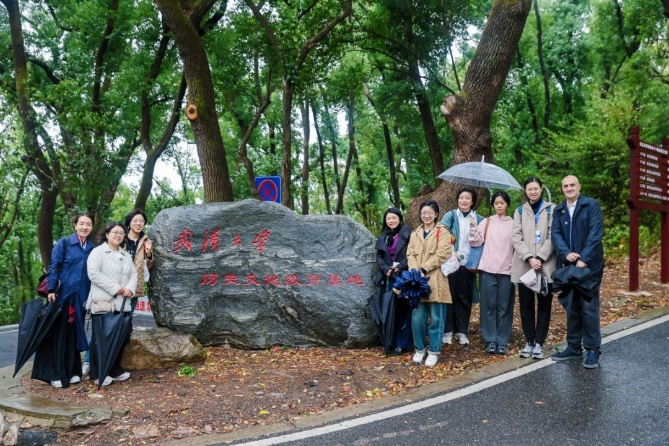 的历史与文化氛围。嘉宾们从外国语学院出发,沿着枫园一路拾阶而上,登临珞珈山,参观了承载着红色记忆的“周恩来故居”。随后,途经行政楼和“九一二”操场,导览的终点是武大标志性建筑——樱花城堡。此次导览活动让与会嘉宾深刻感受到武大独特的学术与文化魅力,为会议日程增添了一抹温馨与人文色彩,同时也促进了彼此间更深层次的交流与互动。