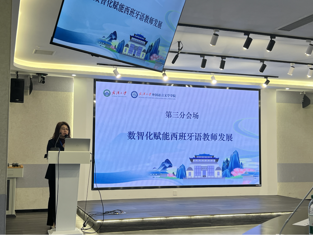 16日下午,与会代表分三个分会场,就西语教学中的热点问题:“西班牙语数智化教材研发”“西班牙语专业数智化教学应用”和“智化赋能西班牙语教师发展”进行了热烈讨论。随后,大会听取了三个小组的讨论情况汇报,第一分会场在四川外国语大学西方语言文化学院副院长温晓静全面介绍了当前数字化教材的现状,并展望了未来教材向“可视、可听、可互动”的数智化方向发展的无限可能,她的报告内容详实、视野开阔,引发了与会嘉宾的热烈讨论。第二分会场在国防科技大学外国语学院南欧教研室主任张力主持,专家们聚焦数智化时代背景下教育模式的革新和挑战,与会专家分享了丰富的实践经验和独到见解。第三分会场在外交学院外语系西班牙语教研室主任王晨颖与会专家讨论作结,数字化时代的到来对教师的知识结构更新提出了更高要求。
