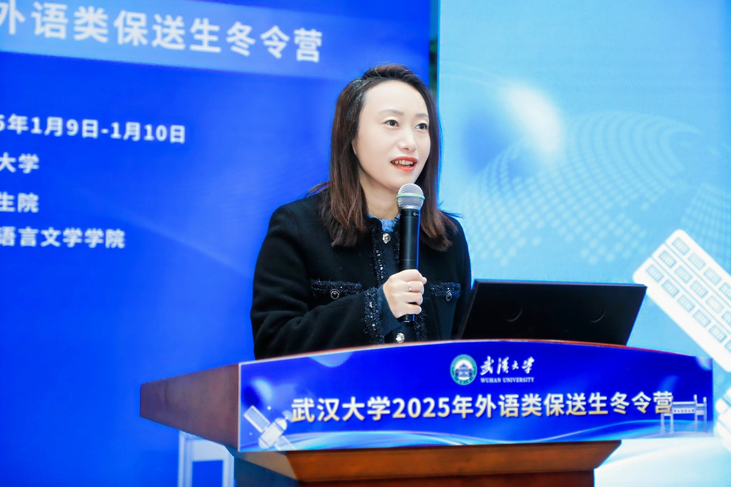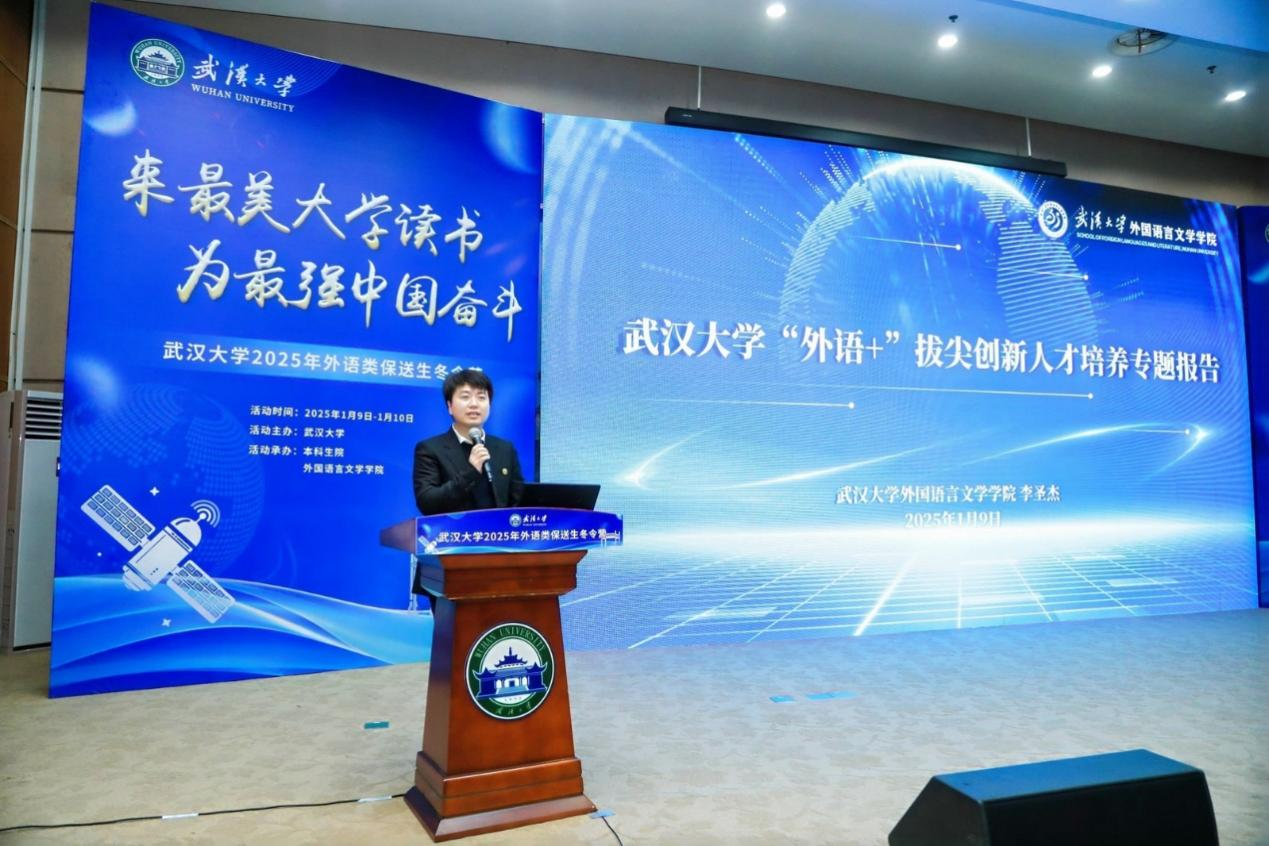 院长李圣杰教授作了题为“外语+”拔尖创新人才培养的专题报告,详细介绍了近年来学院以国家战略需求为导向,构建“外语+”复合型人才培养体系的创新举措,鼓励同学们来珞珈山下求学,探索外语学习的无限可能。