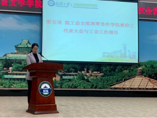 第八届工会委员会自成立以来,形成了“三级联动”、“三位一体”的工作模式,在维护教职工权益、丰富教职工文化生活、推进民主办院等方面的成绩,阐述了今后发展的主要设想。她指出,学院工会将继续加强党建引领、提高自身民主参与度、不断加强教职工文化建设,让工会更加有凝聚力,积极为学院改革发展贡献力量。