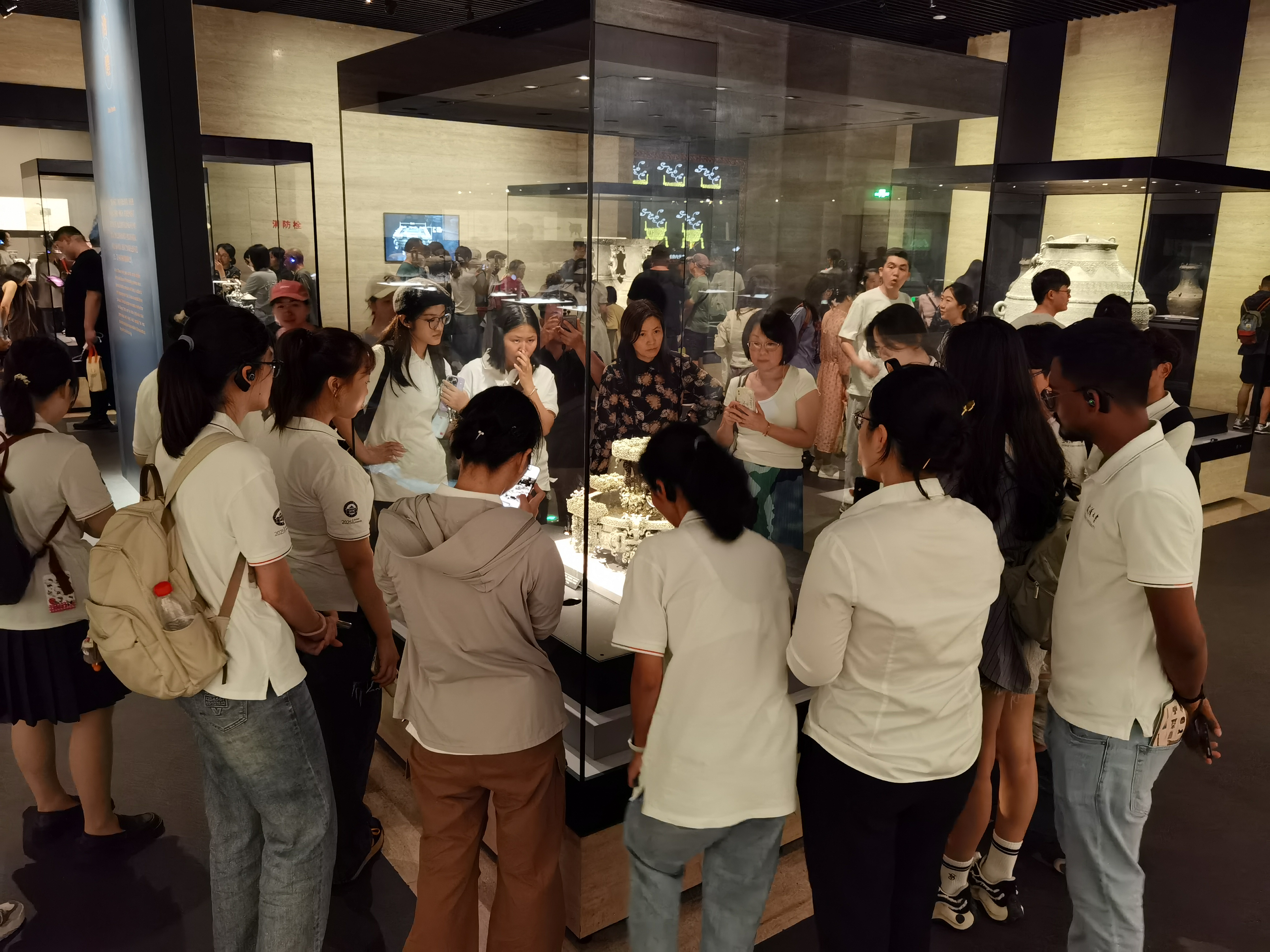 师生在一件件珍贵文物前驻足凝视、认真聆听。这是湖北省博物馆英文网站内容更新翻译团队在进行实地调研,近距离感受荆楚瑰宝,深入记录馆藏文物的历史底蕴与文化内涵,为即将展开的翻译工作“现场备课”。