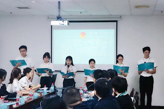 学生团委副书记黎文君同学们的领誓下,两位新团员进行了入团誓词,其他与会人员重温了入团誓词,并齐唱团歌《光荣啊,中国共青团》。