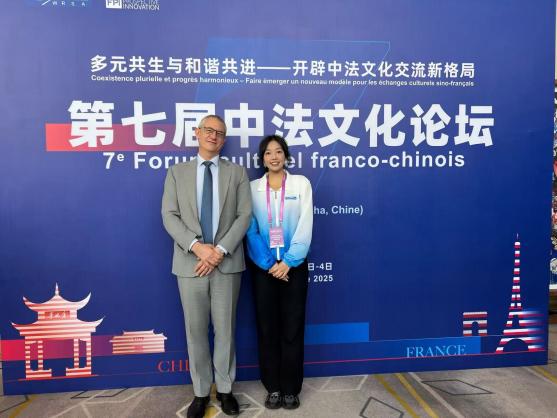 在中法文化论坛中,我担任法国参议院议员大卫罗斯先生的陪同志愿者。这次经历不仅锻炼了我们的专业能力,更是给我们上了一堂生动的跨文化实践课。通过参与论坛活动,我直观地感受到中法文化的共性与差异。同时,我也意识到真诚的沟通仅仅依靠词汇与语法是不够的,更需要对文化细节的尊重和对情感的共鸣。比如,罗斯先生在与我初见时会特意放慢语速,耐心倾听我说的内容。他对长沙的市井文化表现出了很浓厚的兴趣,热情地与我分享他去文和友街区参观时拍摄的照片。我相信,这次活动给与会外宾留下了深刻的印象,在各界人士的共同努力下,中法两国文化交流一定能更上一层楼。