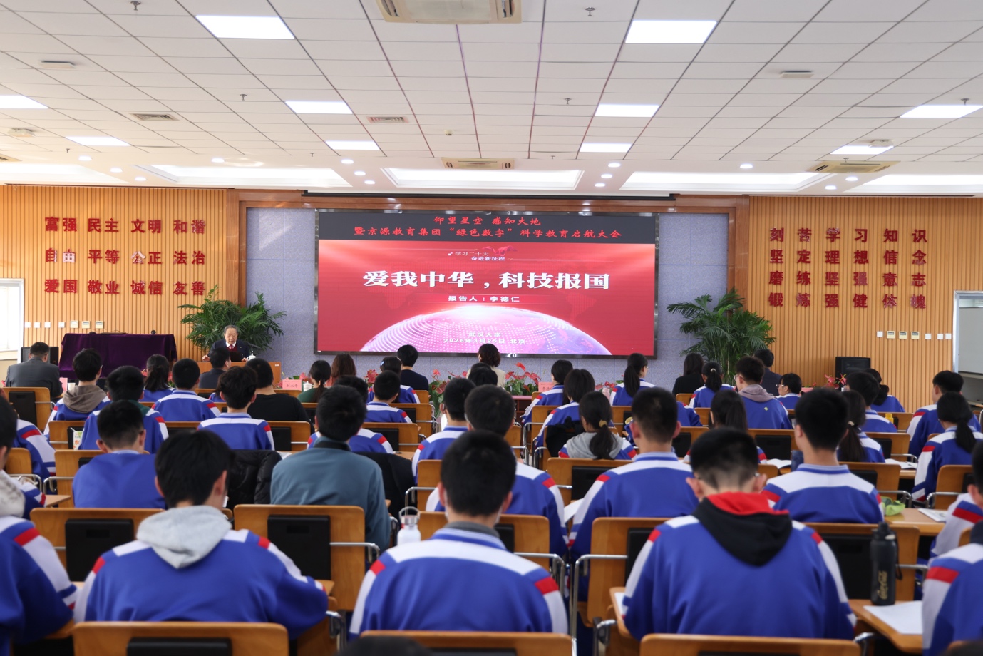 李圣杰院长陪同中国科学院、中国工程院李德仁院士前往北京市京源学校,参加京源教育集团“仰望星空,感知大地——‘绿色数字’特色科学教育启航大会”。校方还邀请了全国政协委员、中国测绘科学研究院燕琴院长,中国测绘科学研究院人事教育处钟勇处长,全国政协人资环委高金鑫副处长出席会议,我校测绘遥感全国重点实验室党委副书记张婧,北京招生组成员、德文系副主任张申威陪同出行。