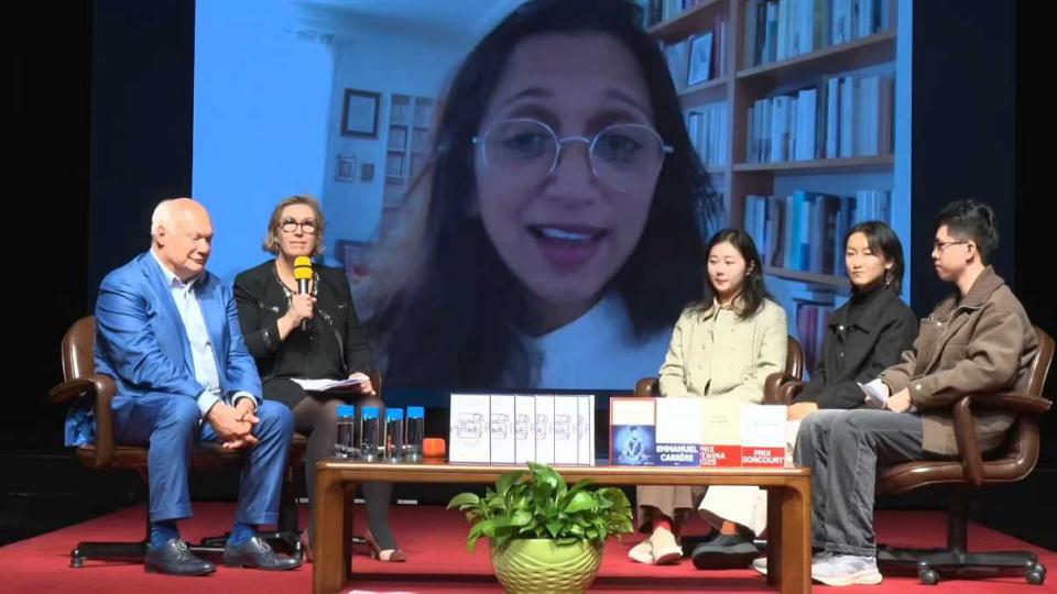 (武大法语系学生张瑞与Nathacha Appanah进行线上交流)