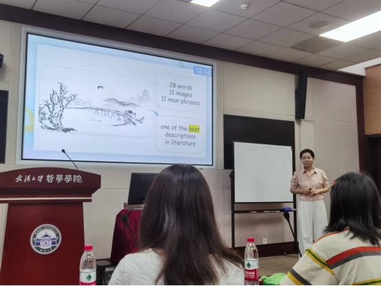 唐军俊老师讲授“描述文写作”,以一个概念、两个规则、三个步骤为框架,充分运用归纳法与演绎法,启发学生发现并运用描述文的写作技巧。以马致远的《天净沙》导入,用王熙凤、埃及艳后等经典描述为例,以52书库