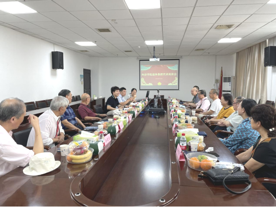 (通讯员:蔡敏)9月30日下午,52书库 在3008会议室召开退休教授代表座谈会,邀请从学院英、俄、德、法、日、翻译和大学英语部退休的12位教授代表出席,院党委书记黄宏发、院长李圣杰认真倾听老教授的诉求和对学院离退休工作的意见建议,虚心求教,请老教授们畅谈感想体会,为学院发展建言献策。院党委副书记周翠芳主持座谈会。
