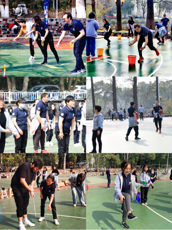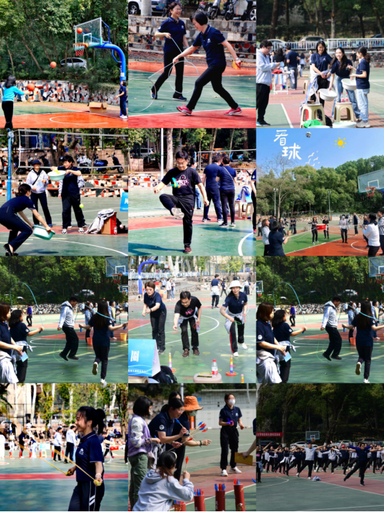 运动场上,老师们被一个个趣味满满、协作多多的项目所吸引,激情洋溢地投入参与,沉浸在运动带来的喜悦与欢畅之中。“在这里找到了儿时的感觉,仿佛回到了童年。”“这次活动惠及到了每一位老师,我一直以来不敢报名参加运动会,今天看来我完全可以hold住全场嘛!”“太畅快了,能够每个学期进行一次吗?”“疫情三年,从来没有像今天这么酣畅淋漓,畅快!”老师们由衷感慨。外籍教师们则是生平第一次亲自体验中国的传统趣味体育,他们在老师们的指导下认真练习,每个项目都让他们惊讶欢喜,“广播体操?太神奇了”“这是我人生第一次踢毽子,感觉好开心”“中国的滚铁环太有意思了,我居然学会了!”同学们在体验运动快乐与志愿服务奉献中,对运动对恩师增添了别样的了解,“平时更多见的是课堂上和生活中的老师,我发现运动场上的老师魅力值更是满分!”“这次活动挺有意义的,我们也好喜欢,与老师们一起合作参与是我们的荣幸。”
