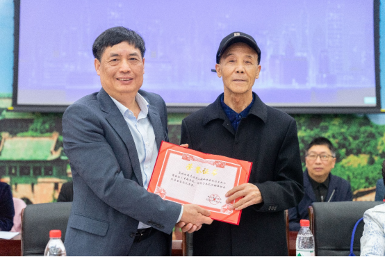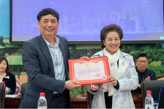 新当选会长马萧教授为熊汉仙同志颁发名誉会长荣誉证书