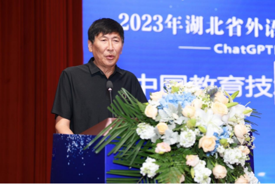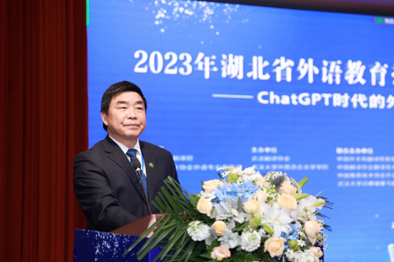 武汉翻译协会会长马萧教授在致辞中代表武汉翻译协会欢迎各位专家学者齐聚武汉,分享ChatGPT时代的研究成果和经验,共同探讨外语教育信息技术和翻译技术的未来发展方向。他表示,此次研讨会是外语教育信息技术与翻译技术领域的重要盛会,为促进外语教育信息化和翻译技术智能化提供了良好的交流平台。他还强调了AI技术对外语教学改革和翻译人才培养的重要性,呼吁各方共同努力,为推动中国的外语教育和翻译事业发展做出贡献。
