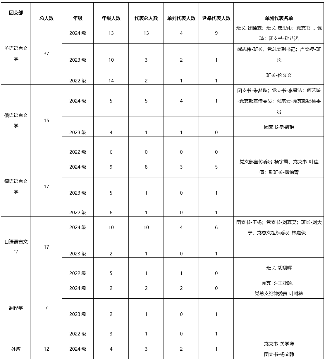 日语语言文学代表团(共12人)