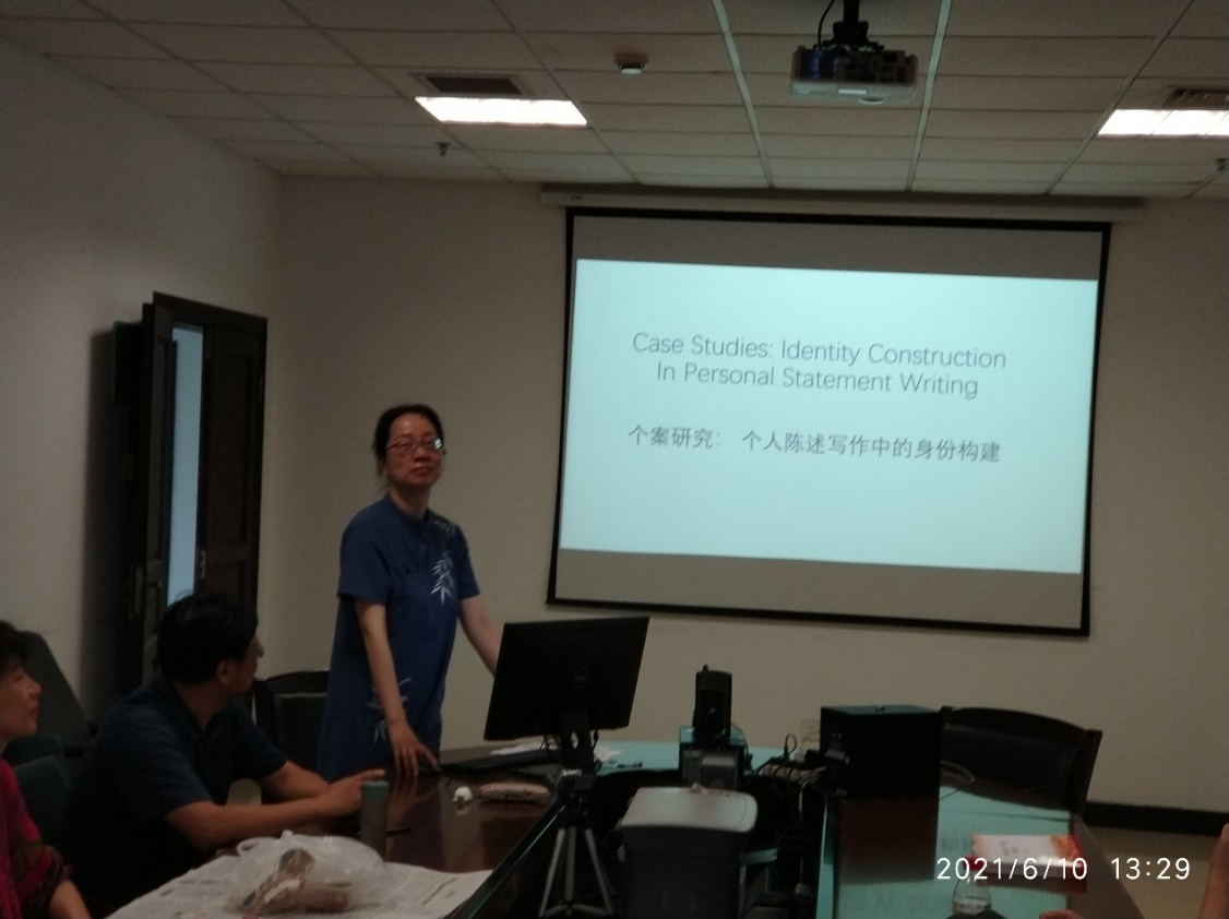 3055会议室举办了本学期第五场学术午餐会。本次讲座由李映老师主讲,刘庆荣老师主持,主题是:“个案研究:个人陈述写作中的身份构建”。开讲之前,李映老师阐述了研究的初衷。李老师的博士论文研究方向是语篇分析,因此想选取具体的语篇体裁进行研究。由于李老师近些年帮助很多学生为出国留学写推荐信和修改个人陈述,而当前国内外针对个人陈述写作的研究较少,且基本都是从体裁分析的视角去探讨,所以她选择了从身份构建的视角解读个人陈述。