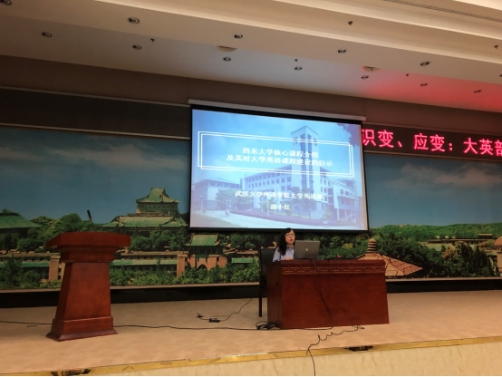 谢小红老师向大家介绍了美国西东大学的核心课程,以及这些课程对大学英语教学的启示。谢老师首先解释了核心课程和核心能力的定义,接着她介绍了西东大学为了培养学生的读写、口语交际、算术、批判性思维以及研究等核心能力开设的课程。谢老师认为大学英语的课程设计也应该注重6个“I”,即Instructive, Intercultural, Interdisciplinary, interaction, introspetive, inspirational, 强调学科建设的跨学科性、跨文化性和互动性、引领成人教育,激励学生成为合格的世界公民。