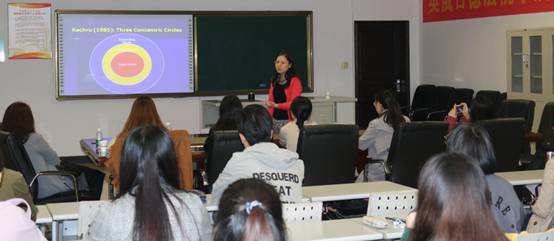 英文系教授张妍岩老师,王爱菊副院长和40余名师生出席了本次学术活动。
