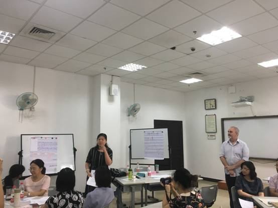 本次面授涵盖学术英语教学理念,教学流程,教学范式,教学语言规范以及相关资源与工具的使用等。培训结合专家讲授,分组讨论,微格教学(micro-teaching),同行互评,专家点评等形式,采用启发式和体验式教学,将理论与实践紧密结合,充分展示学术英语教学课程从设计,实施到考核各个纵向环节的具体操作以及横向目标的实现方式。