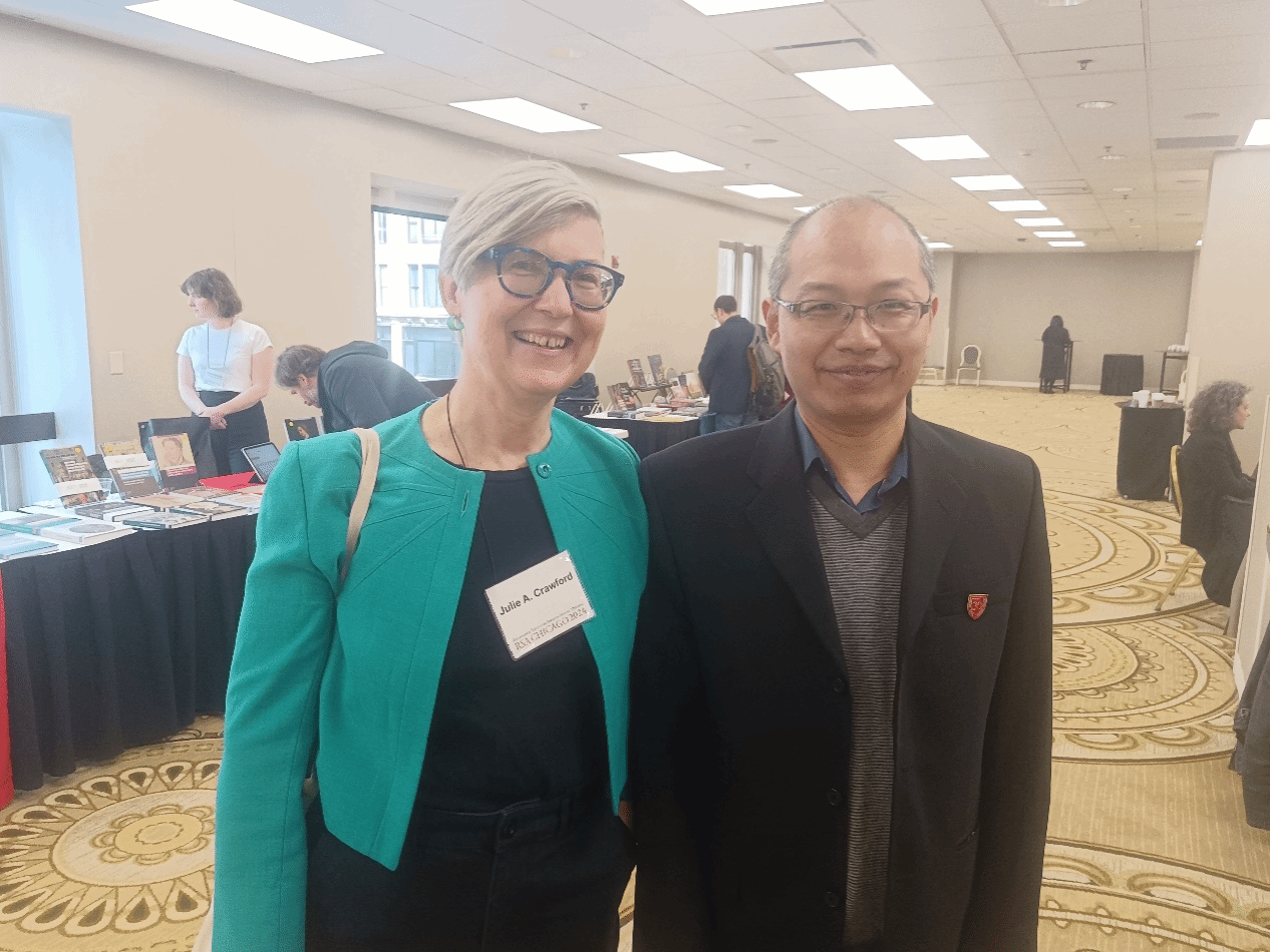 郝田虎教授在今年的美国文艺复兴学会年会上巧遇Crawford教授,2024年3月,芝加哥