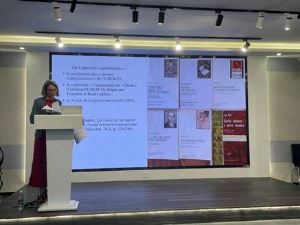 同样来自波尔多蒙田大学的巴拉尔副教授则从自己的比较文学专业出发,为师生们带来4场精彩纷呈的讲座。第一讲为法国小说《茶花女》及其中文改写。在简要介绍《茶花女》写作背景及人物形象来源后,巴拉尔老师引出了另一部与《茶花女》联系紧密的中国小说——上海作家叶灵凤的《未完成的忏悔录》。两部小说在人物设置方面有相似之处,然而在结局和写作特点上又有诸多不同。第二讲为“中国作家鲁迅在法国的接受”。法国人第一次阅读鲁迅是通过罗曼·罗兰创立的《欧罗巴》(Europe)杂志,其中刊载了留法学生敬隐渔翻译的鲁迅作品,《阿Q正传》的译文更是得到了罗曼·罗兰的高度赞赏。此外,米歇尔·鲁阿(Michelle Loi, 1926-2002)和西蒙·雷斯(Simon Leys, 1935-2014)是两位对鲁迅作品在法国传播有重大影响的译者。第三讲为“法语比较文学与世界文学:概念、趋势及代表作家”,巴拉尔副教授首先对比较文学与世界文学进行了定义,而后介绍了法国主要高校比较文学专业教学中的中国文学分支、教学受限因素以及当前法国比较文学研究中的中国形象,并为师生们提供了许多相关研究的参考资料。第四讲为“中国诗歌在法语世界的翻译”,内容涉及法国学术界翻译中国诗歌的历程、“批判性翻译”的发展以及重要译者的诗歌译文等。巴拉尔副教授精心挑选了《诗经》及唐诗若干佳作,与师生共赏读,分析不同译本在表达上的微妙区别。随着时代的发展,越来越多的法语译者注重遵循中国诗歌原本的结构与韵律,使译文在传递诗意的同时,最大程度地保留汉语原作的韵味与风格。