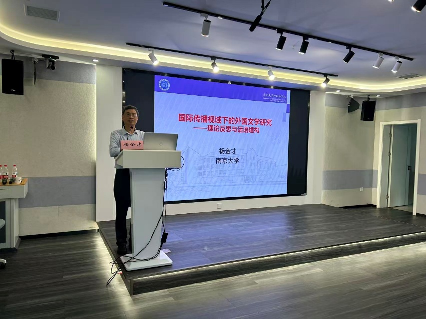 讲座伊始,杨金才教授指出,在外国文学研究领域,选题范围广泛,但研究过程中存在诸多问题,如直接援引外国理论概念、照搬外来观点,以及理论与文本分析相割裂等。当下,国际传播视域下,外国文学研究需立足新时代中国现实语境,辩证、客观地看待外国文学创作与批评理论,采用异文化观照方法,对西方观念、思想和文论进行科学的“中国化”阐释,致力于中国外国文学自主知识体系建构和中国特色外国文学研究学术话语体系建设,走出一条具有中国特色的外国文学研究之路。
