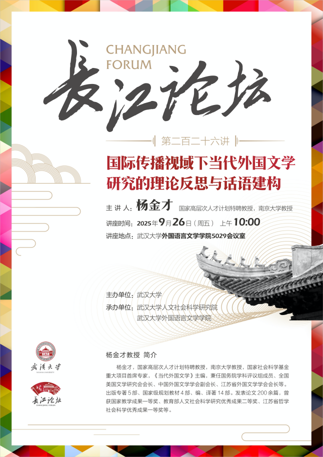 杨金才教授是南京大学教授,国家社会科学基金重大项目首席专家,《当代外国文学》主编,兼任国务院学科评议组成员、全国美国文学研究会会长、中国外国文学学会副会长、江苏省外国文学学会会长等。出版专著5部、国家级规划教材4部、编、译著14部。发表论文200余篇,曾获国家教学成果一等奖、教育部人文社会科学研究优秀成果二等奖、江苏省哲学社会科学优秀成果一等奖等。