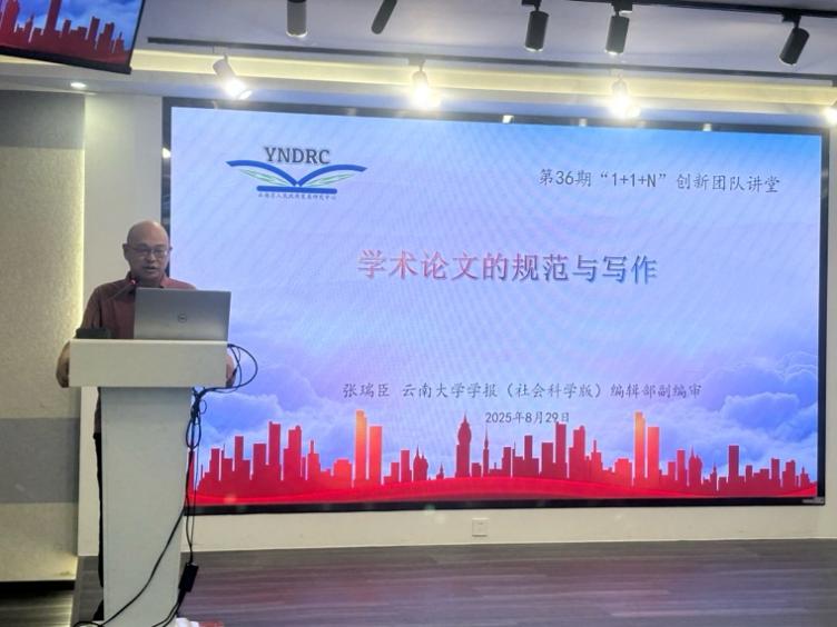 9月27日下午,应学院邀请,《云南大学学报(社会科学版)》编审张瑞臣于5029会议室作题为“学术论文的规范与写作”的专题讲座。讲座由德文系主任徐琼星老师主持,德文系包向飞教授、张申威老师,日文系程一娇老师以及学院部分硕博研究生参与并聆听了讲座。