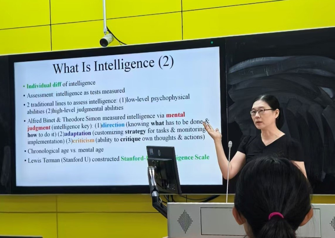讲座伊始,许静芬教授开宗明义,指出人类智力作为认知基础的重要性及其概念的复杂性。她从心理测量学、信息加工和成分分析等多个维度系统介绍了智力的内涵,为整场讲座构建了坚实的理论框架。