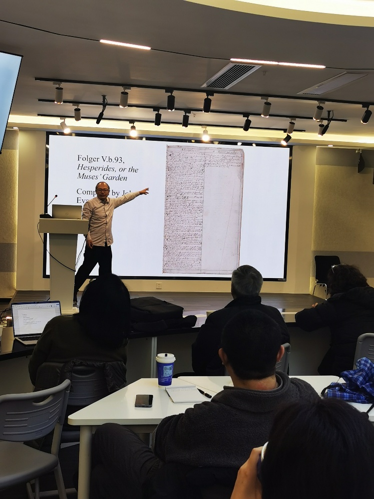 邀请作了主题为“外国文学文献学研究”的学术讲座。本次讲座由英文系王爱菊教授主持,文学院张箭飞教授、西班牙语系翁妙玮教授、英文系黄忠副教授、何佳韦副教授出席,英文系部分硕、博士研究生以及来自兄弟学校的教师代表参加了讲座。