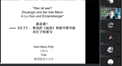 德语系师生进行了题为“谁是谁——《庄子》、鲁迅的《起死》与恩岑思贝格对庄子的重写”的线上学术讲座。本次讲座由德语系主任徐琼星老师主持,参与此次讲座的还有包向飞副院长、华中科技大学德语系主任林纯洁老师及德语系各位老师和全体硕博研究生。