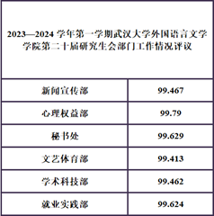 研究生会2023-2024学年第一学期述职方案》关于骨干考核的相关要求,现将主席团成员及部门负责人评议考核结果公示如下: