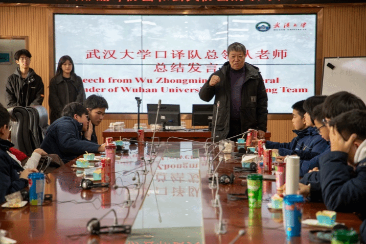 在武大口译队总领队吴钟明老师的发言中,他首先对华师一附中英语社团的学生们和澳新英才学校少年口译队队员们给予了高度评价。华师一附中的教育水平位居湖北省第一,在全国也是名列前茅,一直强调“把方法教给学生,把时间还给学生”的办学理念。武汉澳新英才学校是教育局挂牌的首批“小小外交官”素质教育基地,已经和武汉高校口译队联合培养了4批少年口译队队员。