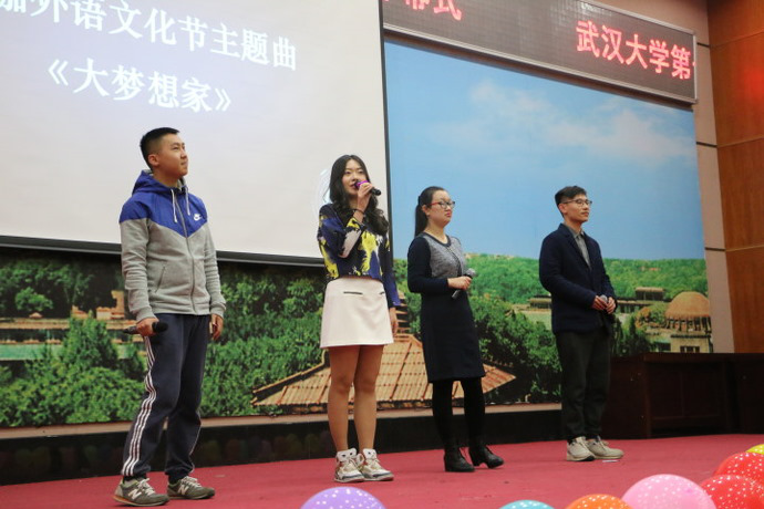 值得一提的是,14年来,每一届的外语文化节都在传承往届精华的基础上,进行着改变和创新。去年的珞珈外语文化节第一次有了自己原创的主题曲《梦想》,但是当时还只有一个非常简单的雏形。今年则是对这首原创的主题曲进行了重新编配,取名为《大梦想家》。历经14年成长的珞珈外语文化节终于有了真正意义上的主题曲,这首主题曲也在珞外的舞台上第一次被唱响。