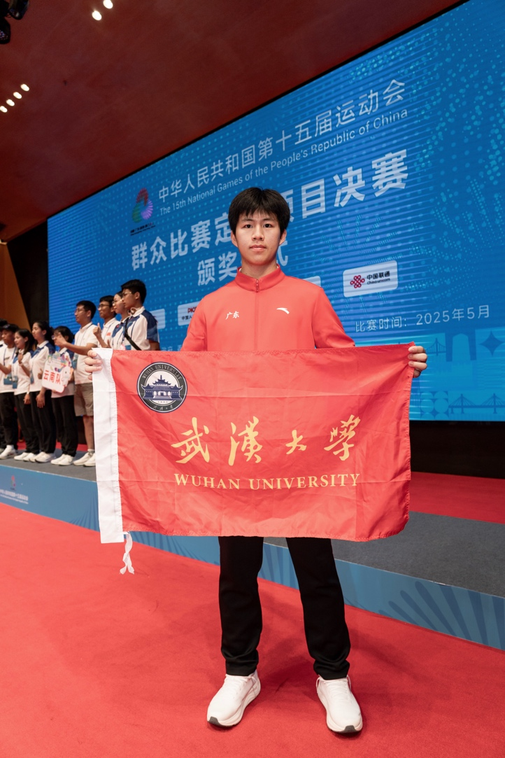 在第十五届全国运动会定向项目无线电测向比赛中,经过四天的激烈角逐,刘沐曦同学代表广东队勇夺3.5Hz短距离赛个人冠军。他凭借在个人单项赛中的出色发挥,为广东队贡献了关键积分,最终助力团队以两分优势力压江西队,成功摘得无线电测向项目团体金牌。这枚金牌不仅代表他时隔九年再次站上全国最高领奖台,更是广东代表团在本届全运会上的第四金。这份沉甸甸的荣誉,既是对他半年如一日科学备战、精益求精的最佳褒奖,也生动诠释了珞珈学子自强弘毅、拼搏进取的青春风采。