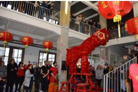 在巴黎七大行政楼大厅,来自巴黎的白眉醒狮舞狮队为观众带来了精彩完整、酣畅淋漓的表演。现场洋溢着欢乐喜庆的节日气氛,狮子上杆揭下彩头和气势澎湃的武术表演赢得了在场观众的热烈掌声和一致好评。