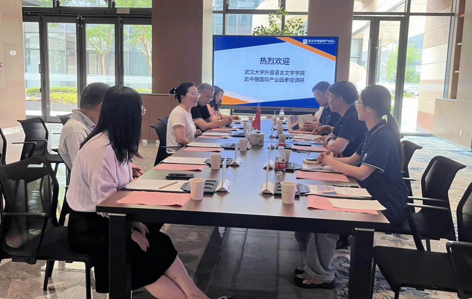 党委副书记周翠芳、德语系主任徐琼星、德语系副主任张申威、研究生辅导员宋皓瑜、研究生兼职辅导员林玉红、郑宁祺一行前往武汉中德国际产业园企业之家参观调研,并就共建日、俄、德、法、英等外语人才实习基地、提供多语种社会服务、产学研合作等进行座谈交流。蔡甸经济开发区区委常委、统战部长、蔡甸经济开发区(奓山街道)党工委书记许永周、奓山街道办事处副主任杨园、招商(投资促进)办公室负责人张苗、招商(投资促进)办公室工作人员薛志娇、何正威、普旭集团武汉公司总经理吴飞、博格华纳汽车零部件(武汉)有限公司人力资源经理杨慧、武汉日特固汽车零部件有限公司行政负责人彭颂、佛吉亚(武汉)汽车部件系统有限公司人力资源经理连伟华等武汉中德国际产业园有关企业代表出席座谈会。
