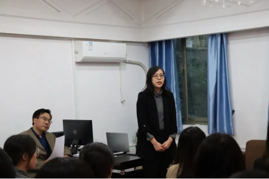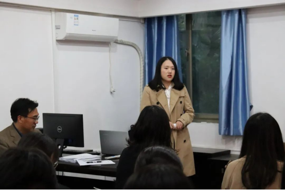 口译队指导老师罗菁从自身从事翻译实践的亲身体会谈起,对口译队队员提出了希望。口译队队员是翻译系优秀且幸运的一批同学,可以接受每周专业的队训,接触高端的国际会议,以及外事活动的实训。但是,在享受这份荣誉的同时,队员们应怀揣更大的责任感与使命感,唯有做到“呼之即来,来之能战,战之能胜”,才能不辱使命。罗老师还表示,她将制定队训计划,关心队员成长,指导口译实践,与大家并肩作战,争取再创口译队辉煌。