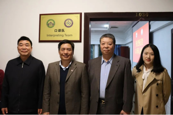 会后,黄宏发书记和马萧院长为武大口译队揭牌。
